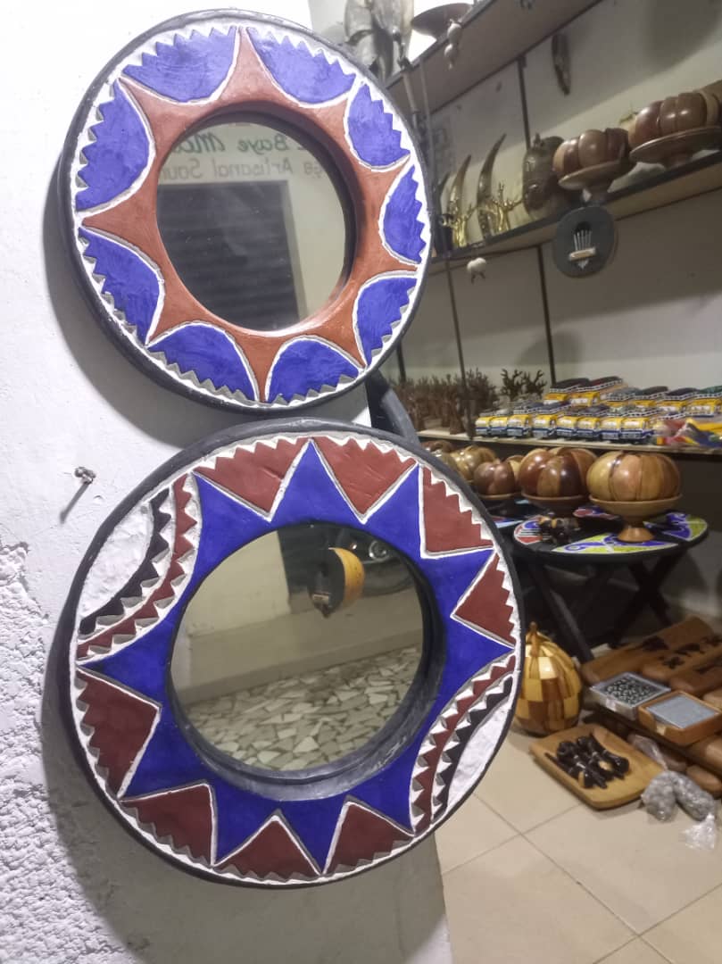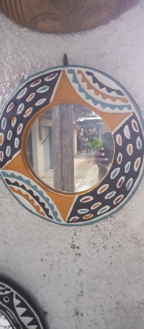 Le miroir décoratif africain est bien plus qu’un simple objet de maison. Fabriqué artisanalement avec des matériaux authentiques, il incarne à la fois la beauté esthétique et l’utilité pratique. Sa forme circulaire et ses motifs peints à la main reflètent le savoir-faire unique des artisans africains, donnant à chaque pièce un caractère exclusif.